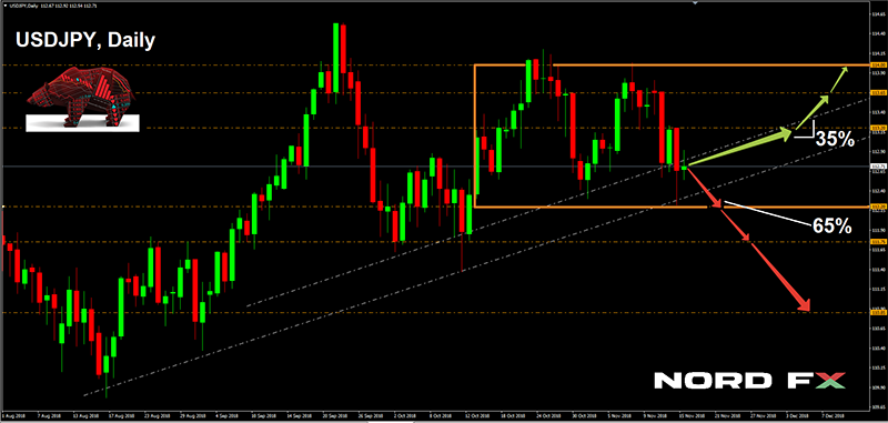 USD/JPY. Last week, expert opinions were equally divided: one half voted for the pair’s growth, the second one was for its fall. In this situation, we advised to move from weekly to longer-term forecast, and we were right. Here, the picture was already different: most analysts (65%), supported by graphical analysis, expected the yen to strengthen and the pair to decline to the 112.00 zone. This was what happened: having won back the losses of the previous two weeks, it reached the level of 112.20. The pair met the end of the trading session at the level of 112. 70, that is, in the same place where it was already trading in the middle of November;