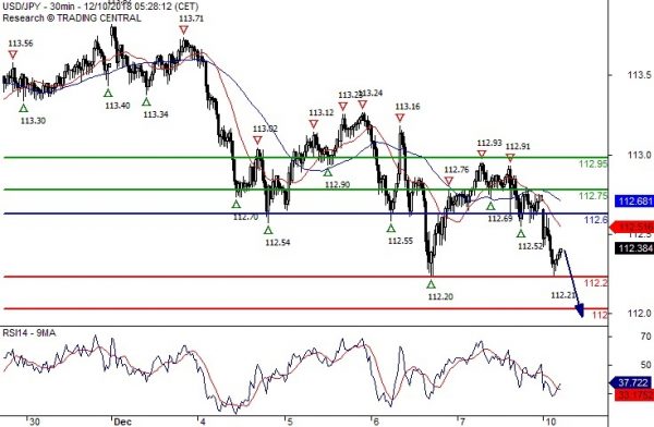 Comment A break below 112.20 would trigger a drop towards 112.00.