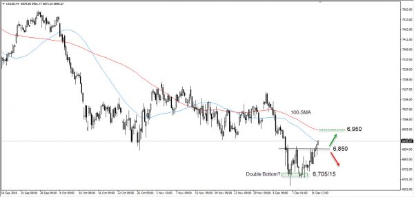 Yesterday, we saw the rally continue further to remove the major 6,850 barrier (the neckline for the double-bottom reversal pattern) to see a resumption of the bull trend and to turn the spotlight directly on next resistance at 6,950. Support is initially seen at 6,850 ahead of 6,715.