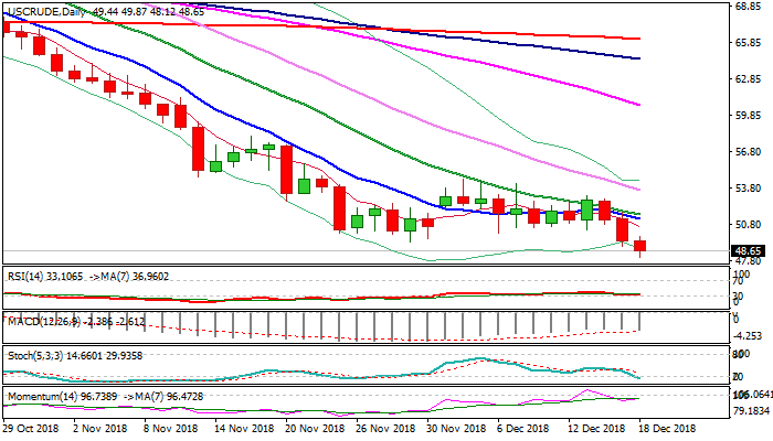 WTI oil holds in red for the third straight day and hit new low at $48.12 (the lowest since Sep 2017) on Tuesday, after strong bearish signal was generated on eventual break and close below psychological $50 support on Monday.