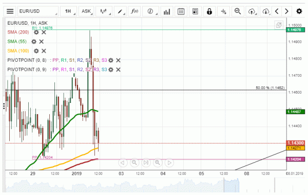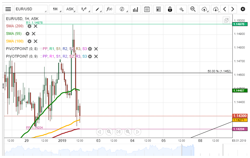 The EUR/USD first daily review reveals that the currency exchange rate was standing at a strong technical support cluster at 1.1420. The cluster was made up of the 100 and 200-hour simple moving averages and the weekly pivot point.