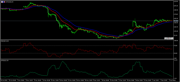 The current cooling of crypto prices could be the calm before another storm. In the past, such prolonged periods of little or no movements have led to major movements. For example, in October last year, the price of cryptos was not volatile. A month later, the prices crashed by double digits. Therefore, with the ETH/USD pair trading at the 148 level and with no volatility, the price could see some major movements. As shown, the Average True Range remains at significant lows while the RSI is unchanged.