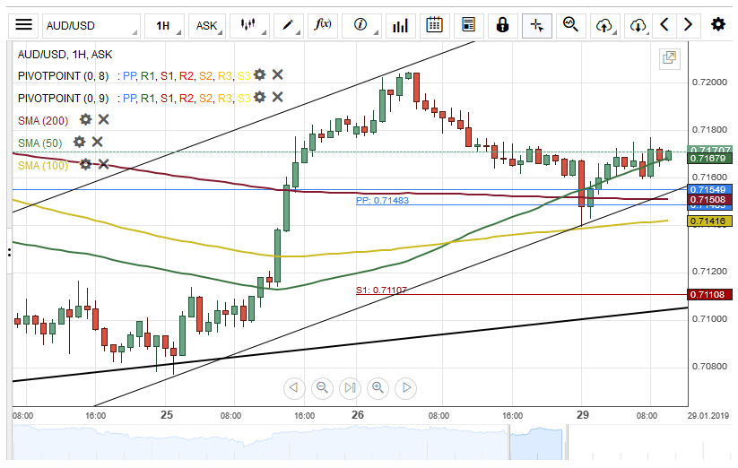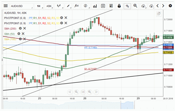 The Australian Dollar depreciated about 63 base points against the US Dollar on Monday. The currency pair tested a support cluster formed by the combination of the weekly and the monthly pivot points at 0.7152 as predicted.