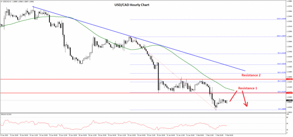 The US Dollar remained in a strong downtrend from well above the 1.3350 resistance level against the Canadian Dollar. The USD/CAD pair broke the 1.3250 and 1.3180 support levels to enter a bearish zone.