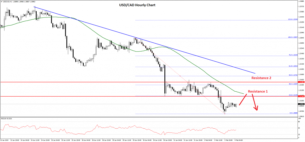 Finally, the 50 hourly simple moving average is placed near the 1.3100 resistance level. Therefore, as long as the pair is below the 1.3100 and 1.3155 resistance levels, there is a risk of more losses in the near term.