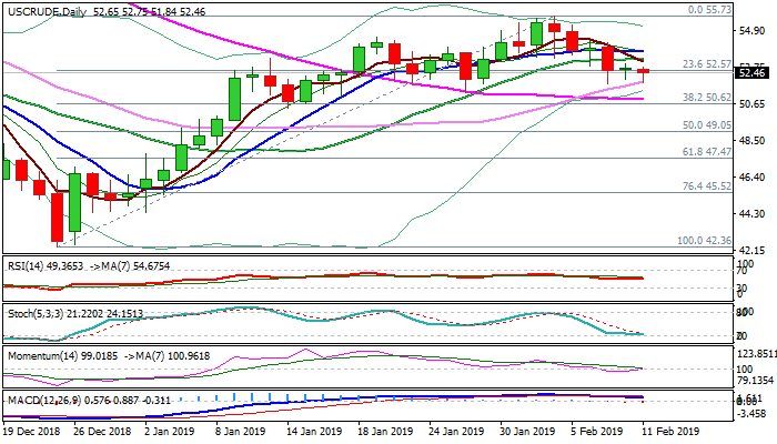 However, the downside attempts were so far limited by rising 30SMA (currently at $51.94), with downside rejections seen last Thu/Fri and today’s bounce from 30SMA) generating initial signal that bears might be running out of steam.