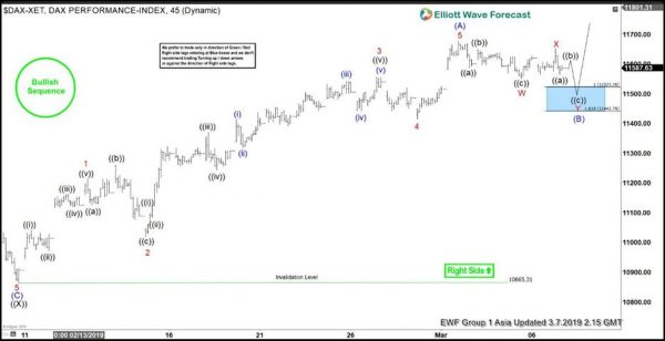 Short Term Elliott Wave view in DAX shows a bullish sequence structure from December 28, 2018 low, favoring further upside. The Index has potential to reach 100% extension towards 11912 – 12157 before ending cycle from December 2018 low. The rally from December 28, 2018 low is unfolding as a double three Elliott Wave structure where wave ((W)) ended at 11321.62 and wave ((X)) ended at 10865.31.