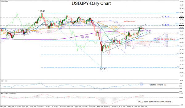 USDJPY crawled above the 200-day moving average (MA) and towards 2 ½-month highs on Monday but the upper bound of the ascending channel capped bullish action, with the price sliding sideways since then.