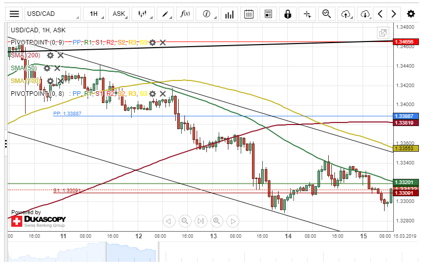 The US Dollar appreciated about 56 base points against the Canadian Dollar on Thursday. However, the surge was stopped by a resistance level formed by the 50-hour simple moving average at 1.3337.