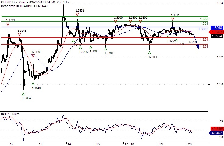 Comment A break below 1.3240 would trigger a drop towards 1.3210.