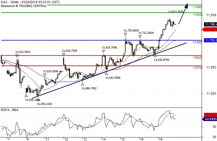 Comment The break above 11705.00 is a positive signal that has opened a path to 11850.00.