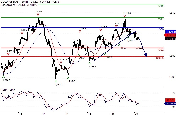 Our preference Short positions below 1308.00 with targets at 1302.00 & 1299.50 in extension.
