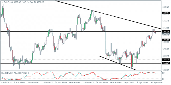 XAUUSD rallied to a fresh two-week high on Wednesday but price retreated after touching intraday highs of 1310. Price action remains stuck in the resistance area of the 1307 – 1301 region. If we see a reversal lower, then gold could be potentially turning lower. However, the support at 1285 will be a key level in determining further declines