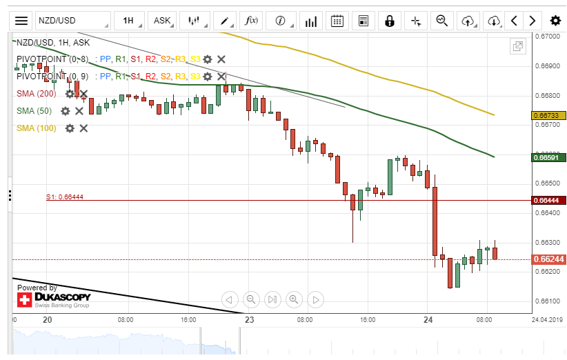 The New Zealand Dollar depreciated about 58 base points against the US Dollar on Tuesday. The decline was stopped by a support cluster formed by the combination of the weekly and the monthly PPs at 0.6644.