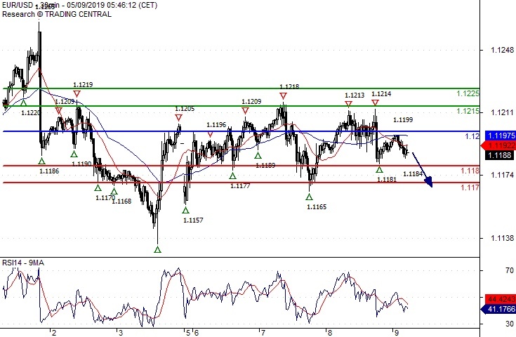 Our preference Short positions below 1.1200 with targets at 1.1180 & 1.1170 in extension.