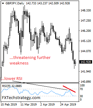 GBPJPY retains downside bias on bear pressure as it looks to follow through lower in the days ahead. further on Wednesday following its price extension. On the downside, support comes in at the 142.50 level where a violation will aim at the 142.00 level. A break below here will target the 141.50 level followed by the 141.00 level. Conversely, resistance is seen at the 143.50 level followed by the 144.00 level. A cut through that level will set the stage for a move further higher towards the 144.50 level. Further out, resistance resides at the 145.00 level. All in all, GBPJPY retains downside bias on bear pressure.