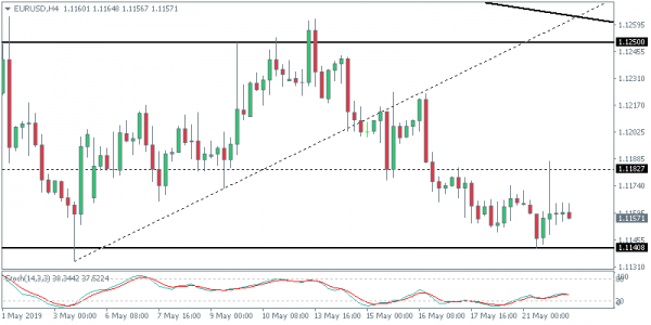 The currency pair extended declines to briefly test the support area near 1.1140 before pulling back modestly higher. The sideways range within 1.1182 and 1.1140 remains in place for now. The currency pair could remain within this range unless there is a strong breakout in either direction.
