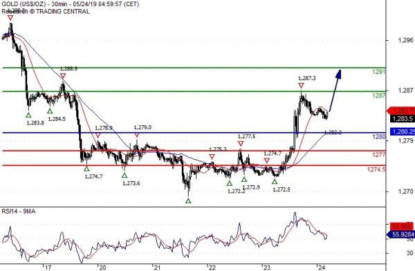Our preference Long positions above 1280.00 with targets at 1287.00 & 1291.00 in extension.