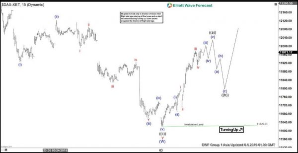 Elliott wave view in DAX calls the pullback to 11625.31 as ending wave (W). This move lower ended the decline from May 3 high. The Index thus is within wave (X) rally to correct the cycle from May 3 high (12435.67) before the it resumes lower again. On the chart below, we can see the rally from June 3 low (11625.31) is unfolding as an impulse Elliott Wave structure. Up from 11625.31, Wave (i) ended at 11744.93, wave (ii) ended at 11689.51, and wave (iii) remains in progress. Wave (iii) subdivides as another impulse Elliott Wave structure in lesser degree.