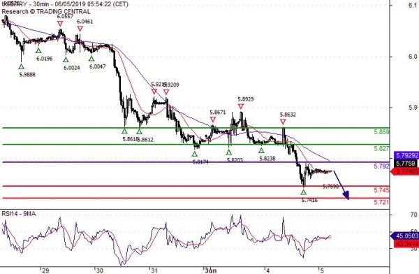 Comment The upward potential is likely to be limited by the resistance at 5.7920.
