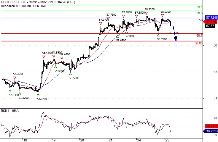Alternative scenario Above 58.00 look for further upside with 58.60 & 59.10 as targets.