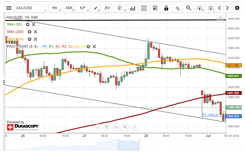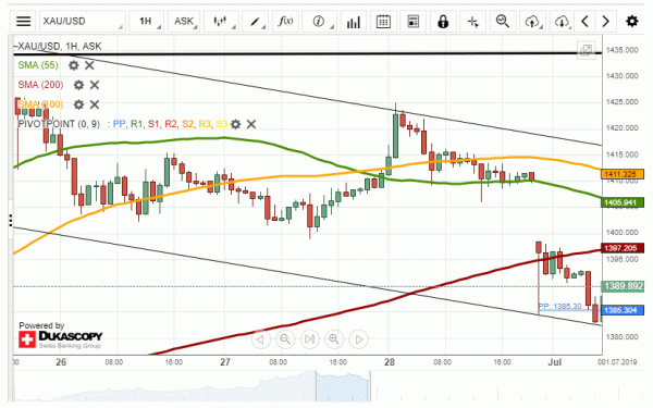 During Monday’s morning, the XAU/USD rate was testing the given support. If it holds, it is expected, that gold could remain to appreciate against the US Dollar. However, note, that the rate has to surpass the 200-hour SMA at 1,397.20.