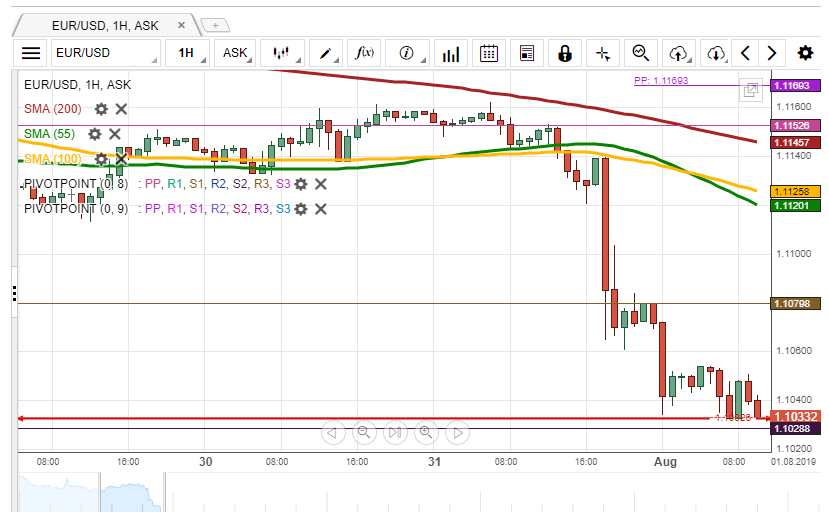 Yesterday, the EUR/USD currency pair renewed the 2018/2019 minimum located at 1.1033. During Thursday’s morning, the pair was trading near the given level.
