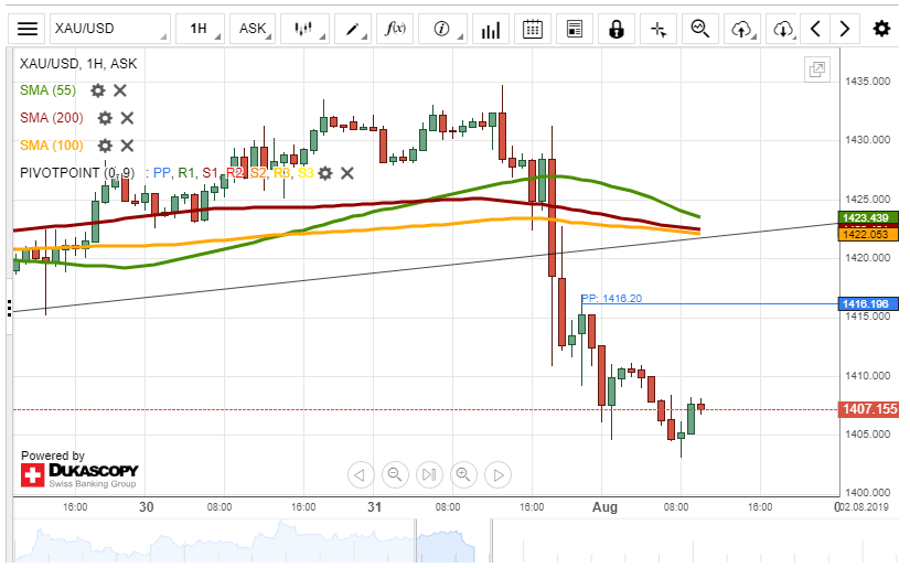 Yesterday, the price for gold dropped sharply to the psychological level at 1,405.00. During today’s morning, the XAU/USD exchange rate was trading near the given level.