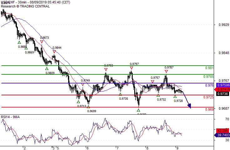 Our preference Short positions below 0.9760 with targets at 0.9725 & 0.9690 in extension.