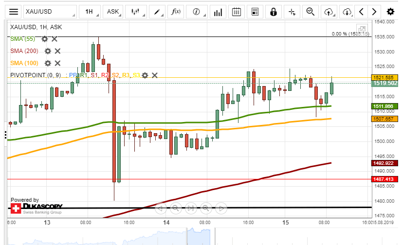 On Wednesday, the XAU/USD exchange rate tried to surpass the resistance level formed by the monthly R3 at 1,521.59. During today’s morning, the rate was testing the given level.