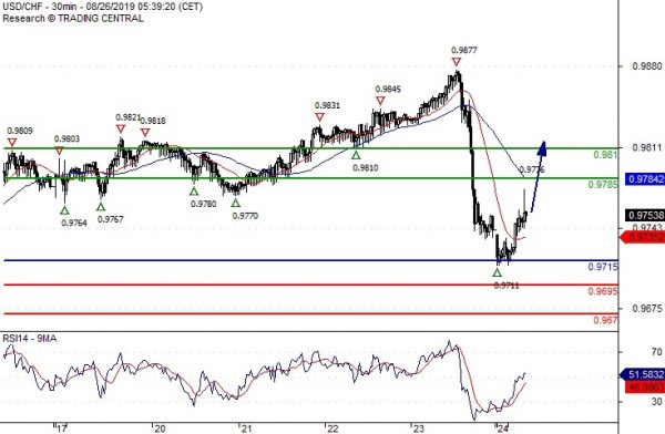 Our preference Long positions above 0.9715 with targets at 0.9785 & 0.9810 in extension.