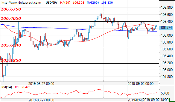 Volatility remains low as the USD/JPY is making its way up towards the resistance zone at 106.42. A successful break through this area could improve sentiment and lead to an attempt at 106.677. If successful, the bulls should aim for 107.20. On the downside, support is at 105.68 and if it does not hold, the next one is at the 105.07-105.18 zone.