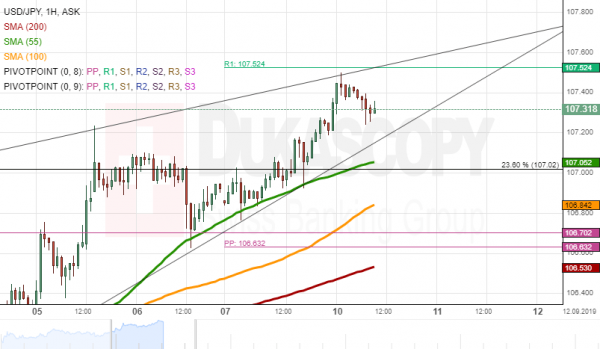 Yesterday, the USD/JPY currency pair surpassed the 107.20 level. During Tuesday morning, the pair tested the resistance level—the weekly R1 at 107.52.