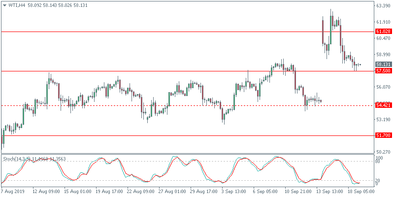 Oil prices reacted sharply at the start of the week to news of drone attacks wiping out some of the oil production. However, the price of WTI crude oil has been steadily declining since Monday. Saudi Arabia announced that it expects oil production to return to normalcy by the end of this month. Meanwhile, the weekly crude oil inventories showed a modest buildup of 1.1 million barrels.