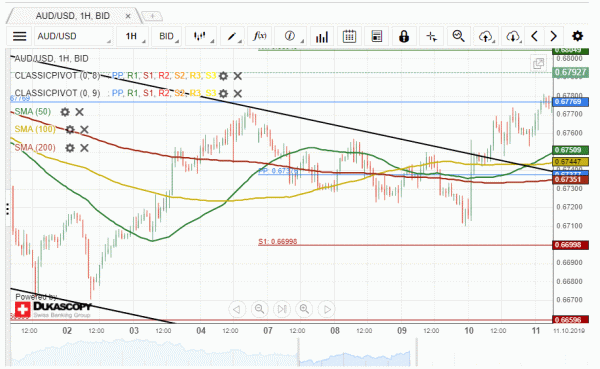 The exchange rate is currently trading near the monthly pivot point at 0.6776 during the morning hours of Friday’s trading session.