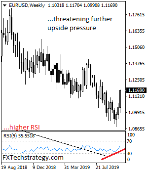 EURUSD with the pair retaining its recovery threats after closing higher the past week, more gain is expected. Support comes in at the 1.1100 where a break will turn risk to the 1.1050 level. A breach below here will target the 1.1000 level. Further down, support stands at the 1.0950. Conversely, on the upside, resistance comes in at 1.1200 level with a violation of there opening the door for further gain towards the 1.1250 level. Further up, resistance lies at the 1.1300 level. A cut through that level will clear the way for a move towards the 1.1350 level. All in all, EURUSD expects more gain in the days ahead