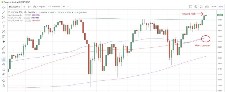 The SPX500 index rose for a second day in a row yesterday, hitting a new record high on positive trade talk comments and Fed rate cut hopes