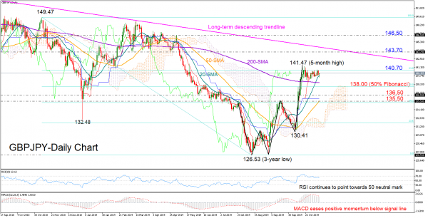 GBP/JPY is stuck between the 200-day simple moving average (SMA) and the 140.70 resistance, which is also the 61.8% Fibonacci of the downleg from 149.47 to 126.53.