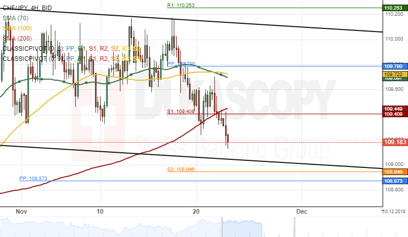 The Swiss Franc has depreciated about 0.75% in value against the Japanese Yen since this week’s trading sessions. The currency pair breached the 200– period simple moving average at 109.43 on Friday morning.