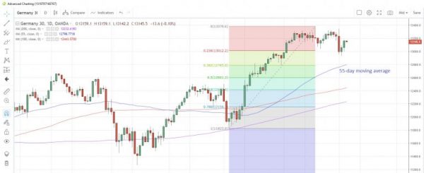 The index is still above the 55-day moving average at 12,798 and the 38.2% Fibonacci retracement of the October 3 to November 19 rally at 12,785