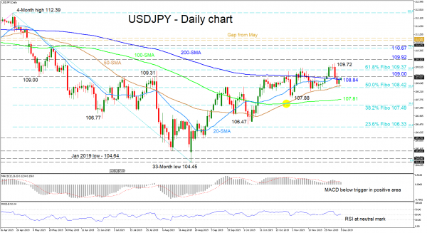 Otherwise, if sellers mange to drive the price back down past the 200-day SMA and the 108.42 area – where the 50.0% Fibo and 50-day SMA reside – upside pressure could come from the 107.81 region, where the 100-day SMA and lower low lie. If selling persists, the 38.2% Fibo of 107.49 could challenge the bears ahead of the 106.47 trough and nearby 23.6% Fibo of 106.33.