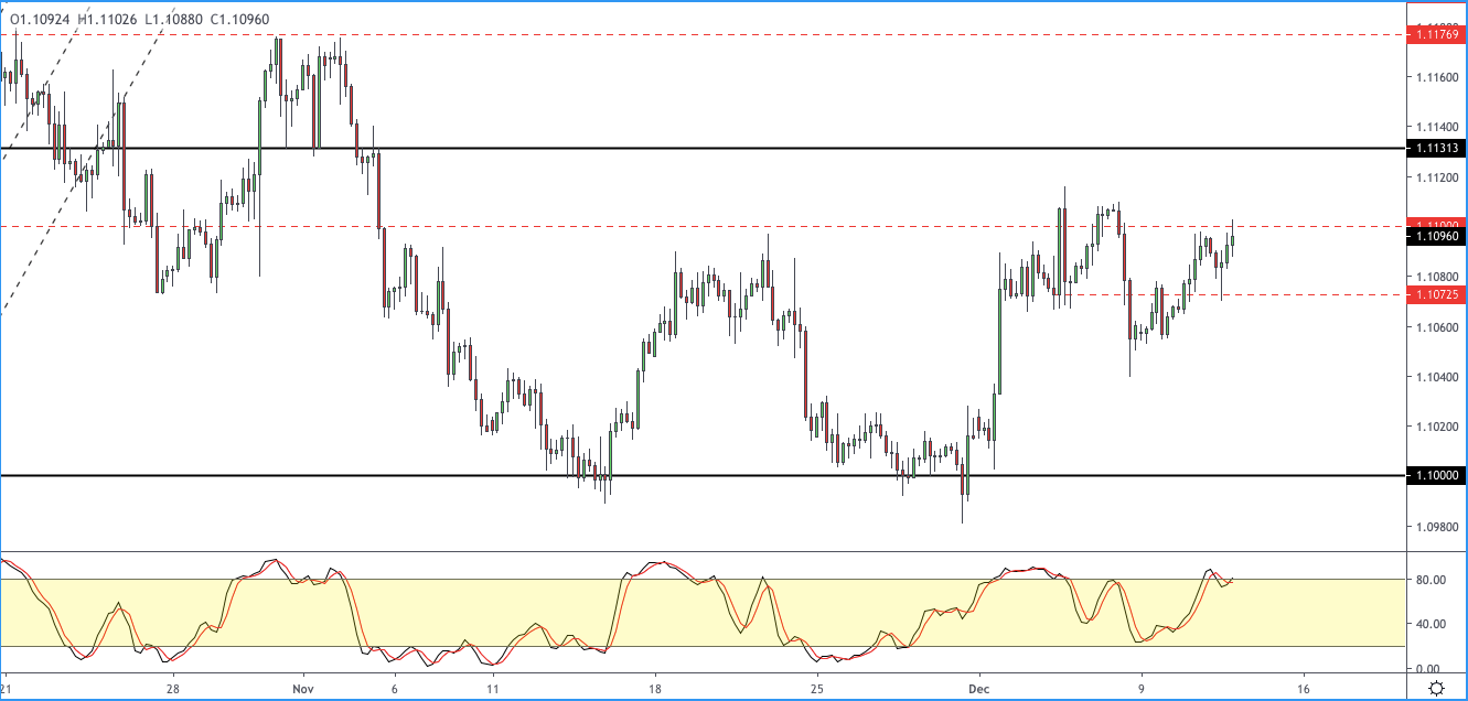 The euro rose to session highs near 1.1100. However, price action is likely to remain within the range of 1.1100 and 1.1072 ahead of today’s ECB meeting.