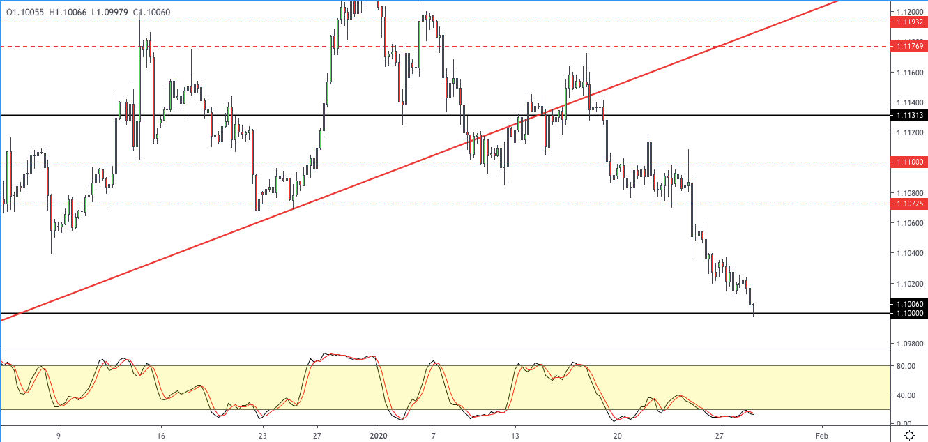 The Euro is extending declines amid a strong economic report from the United States. The CB Consumer confidence report rose to 131.6 in January, beating estimates of a headline print of 128.2. The data for the previous month was revised higher to 128.2.