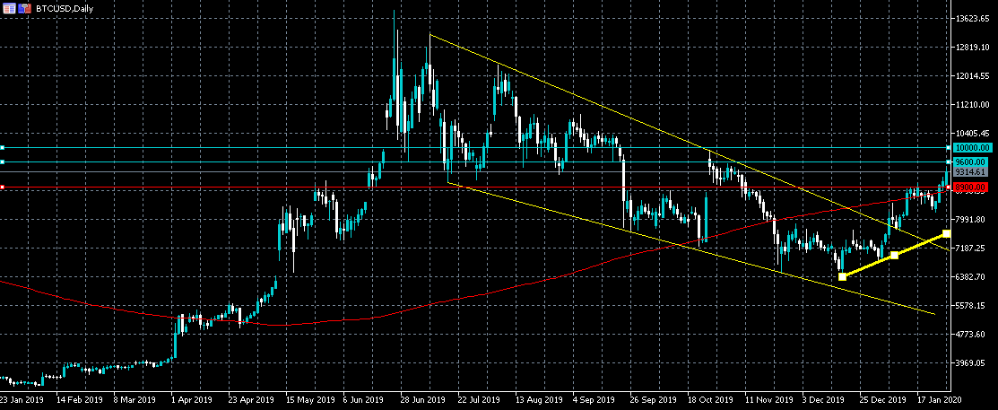 Bitcoin has risen to a fresh 2020 trading high as positive tones continue to spread through almost the entire cryptocurrency market. Bitcoin has also turned technically bullish for the first time this year and could start to target towards the psychological $10,000 level. BTCUSD bulls need to defend the $8,900 support level to keep the bullish short and medium-term bias intact.