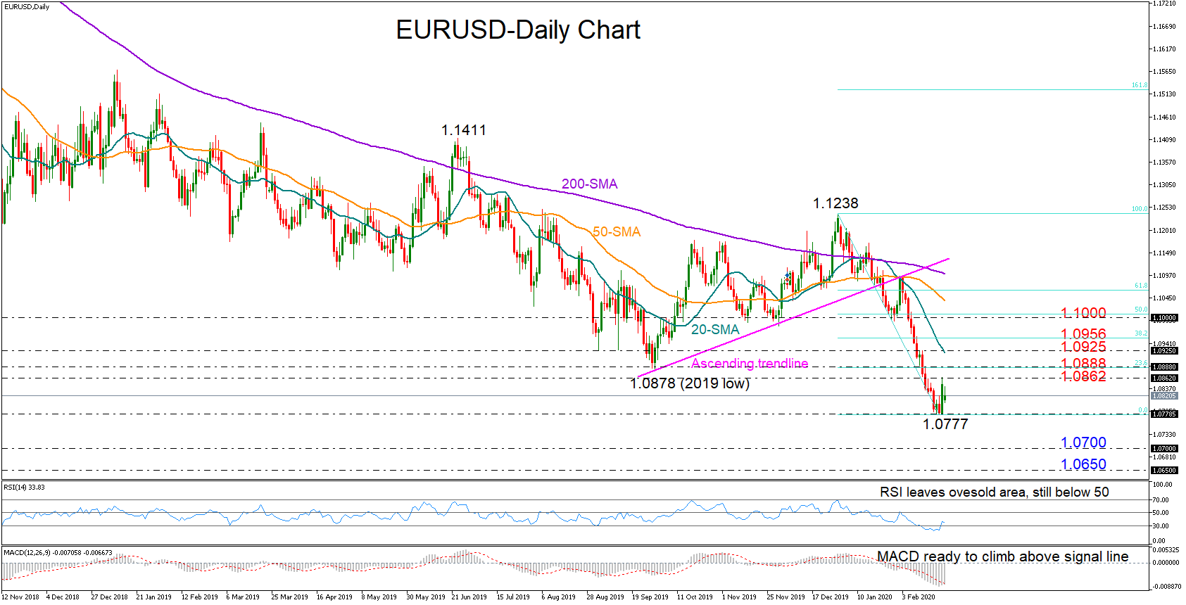 EURUSD finally found some footing around a 34-month low of 1.0777 last week following the heavy sell-off from the beginning of the month, with the price strengthening towards the 1.0800 territory on Friday.