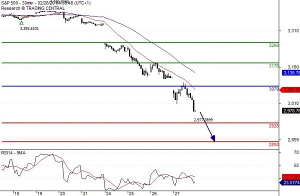 Our preference Short positions below 3079.00 with targets at 2928.00 & 2850.00 in extension.