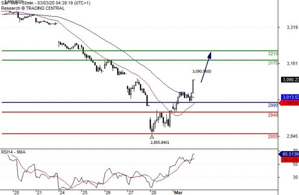 Our preference Long positions above 2990.00 with targets at 3175.00 & 3215.00 in extension.