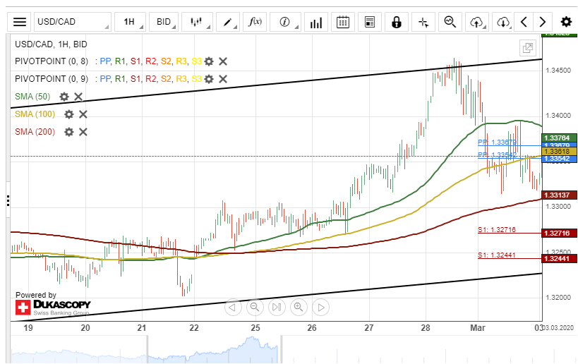 The US Dollar depreciated by 94 basis points or 0.70% in value against the Canadian Dollar on Monday. The currency pair breached the weekly and the monthly PPs at the 1.3359 area during yesterday’s trading session.