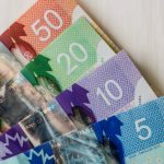 A close up image of Canadian $100 bills in the pocket of a young girls jeans.