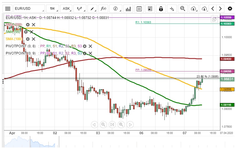 If the given resistance holds, it is likely that a reversal south could occur in the short run. In this case the exchange rate could gain support from the 55-hour SMA near 1.0810.